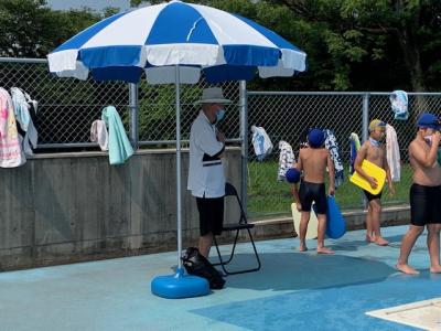 連日、プールで行われている水泳の授業には、プール監視ボランティアとして、保護者の方々に多数ご協力いただいています。