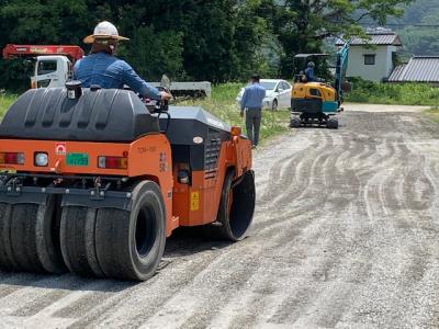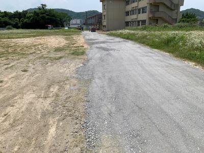 本日は、別の工事等の関係で、午前中だけの作業でしたが、写真のとおり重機2台も導入され、瞬く間に本校側から旧二小体育館前までに平らな道ができていました。