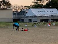 25日(土)の早朝から、運動場(特に走路を中心に)にしつこく根付いていた草や周辺の草刈りを行いました。