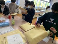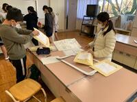 図書室では、司書の弘先生と地域学校協働活動推進員の田添さんが、2人で何やら作業をされていました。