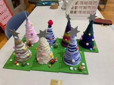この他にも、田添さんが毛糸で作った「もふもふツリー」がいくつもありました。