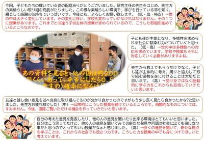 なお、まだ回答されていない方は、是非各クラスで配付されています学級通信に掲載されたQRコードにアクセスされて感想等をお願いします。