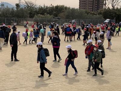一斉下校の会では、「これまで6年生ありがとう」「新しい登校班長さんよろしくお願いします」という感謝と期待の拍手を送りました。