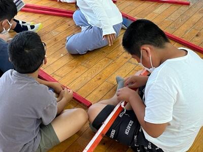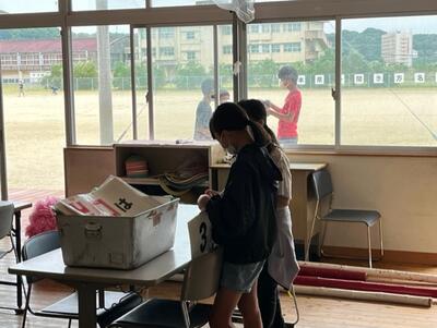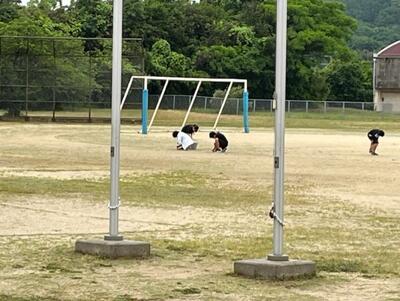 運動会当日に、テントや机イスなど大きなものは職員や保護者の方が運んだのですが、放送設備やはちまき類、運動会のめあてカードなど細かなものをせっせと片付けてくれていたのです。