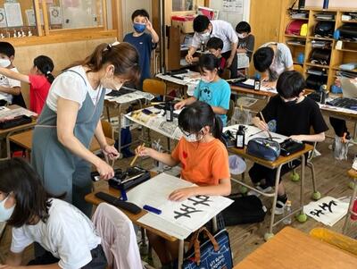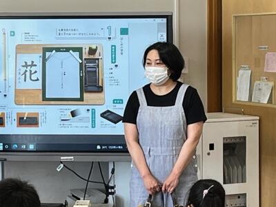 4年生では習字ボランティアの方が3名いらっしゃいました。