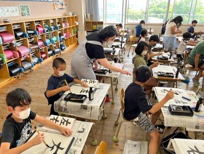 筆の使い方や、左払いなどを担任だけでは見取りが難しいため、ボランティアの方々にお手伝いをしていただきました。