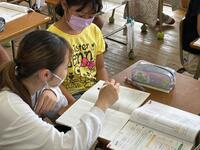 今日は、福岡市にある中村学園大学から、将来小学校の先生を夢見ている学生さんがボランティアで複数の学年に入ってくれました。
