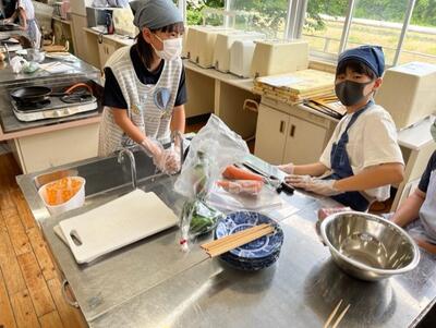 昨日に引き続き、具材の1つ玉ねぎは、ひまわりファームで収穫したものを使っていましたが、まさかまさかの皮ごと水洗いをするグループが…