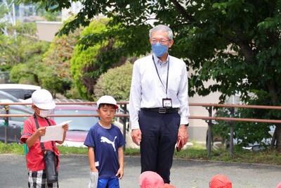 梅雨が明けた暑い暑い中でしたが、1年生は校区内のこうえんたんけんに出かけます。
