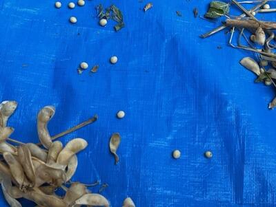先日収穫した大豆の枝やさやでした。完全に乾燥してしまっている様子です。