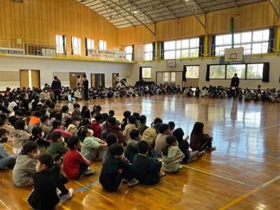 今日は、全校児童が体育館に集まって「全校人権集会」を行いました。