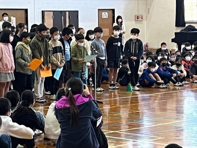 各学年で学習した内容の紹介やその学習を通して学んだこと、思いを綴った作文発表などもありました。