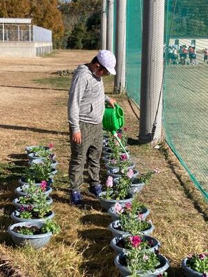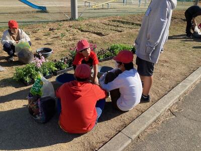 全部で20以上の円形プランターに植えることができました。6年生の思いをしっかりと受け継いでほしいですね。