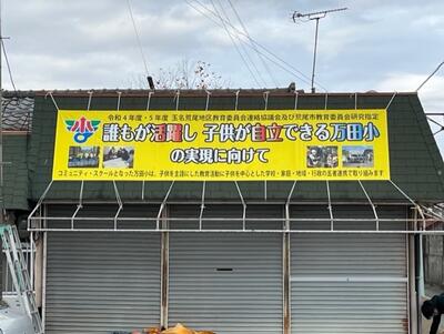 そこで、子供たちが頑張っていることを広く地域の方々にも知ってもらおうと横断幕を作成することにしました。それがこちらです。
