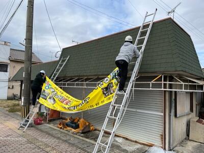 家主の江崎さんはもちろん、その場所を紹介していただいた小田さん、小田さんに話をしていただいたコーディネーターの田添さん、そして横断幕を作成・設置していただいた岩村さんなど多くの方の力添えで仕上がりました。