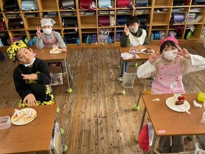 手作りのゲームやくじ引きで楽しみ、一人一人に用意されたスポンジケーキに生クリームなどを思い思いにトッピングしておいしくいただきました。
