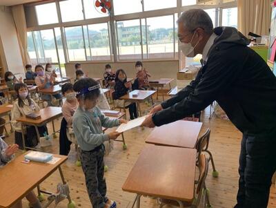 各学年の代表者に、その1年間を無事に終えた修了証が手渡されました。