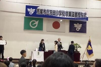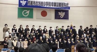 72名の子供たちは、今日で母校万田小学校を巣立ちますが、困ったとき、苦しいとき、辛いときこそ、仲間と力を合わせて乗り切りましょう。そして、いつでも万田小や家族、地域の方を尋ねてきてください。力になりますので…。