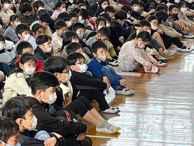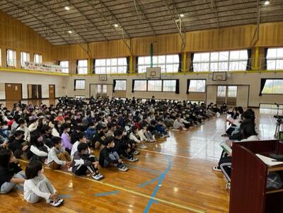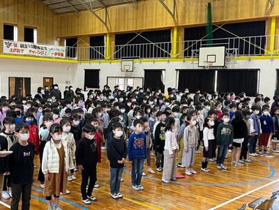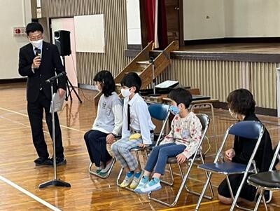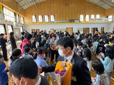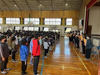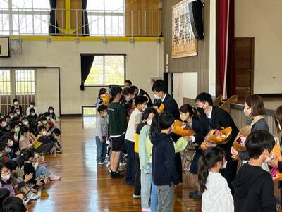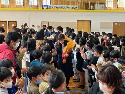 さらに、3月末で万田小を転出する3名の紹介がありました。さみしくなりますが、新しい学校でもがんばってほしいですね。