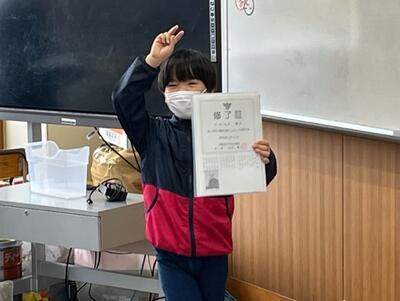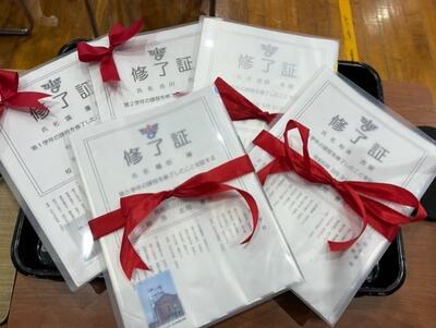 ※教室では、一人一人に担任から修了証が手渡され、ニッコリ笑顔になっていました。