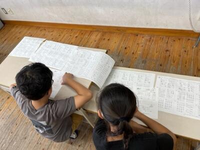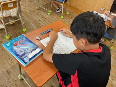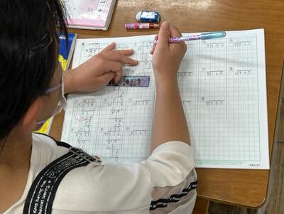 計算の学習を進める子、プリントに取り組む子など様々ですが、終わると、自分たちで丸付けをして、また次の問題に挑戦していきました。
