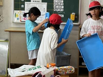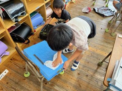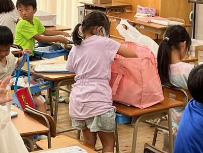 教室では、そうじや片付け、そして先生から説明が行われていました。