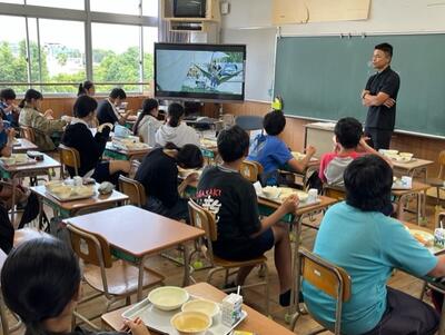 そこで、のあそびラボの責任者である「中村さん(本校学校運営協議会副会長)」と「星田さん」が来校し、6年生とランチミーティングという形で説明をされました。