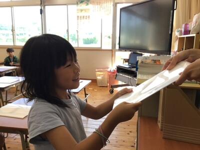 笑顔で先生から受け取る子供たちでした。