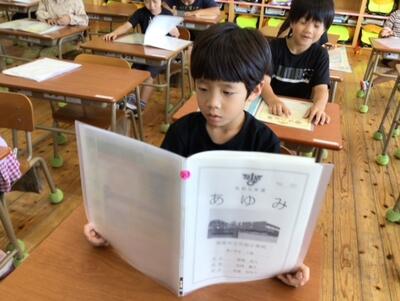 終業式と言えば、あゆみ(通知表)です。1年生にとって、生まれて初めて手にする通知表!