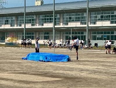 秋晴れの下で、100m走(全員)、走り幅跳び・走り高跳び・50mハードル走・800m走・ソフトボール投げ(各自1種目ずつ)、代表400mリレー(各クラス男女1チームずつ)の種目で行われました。