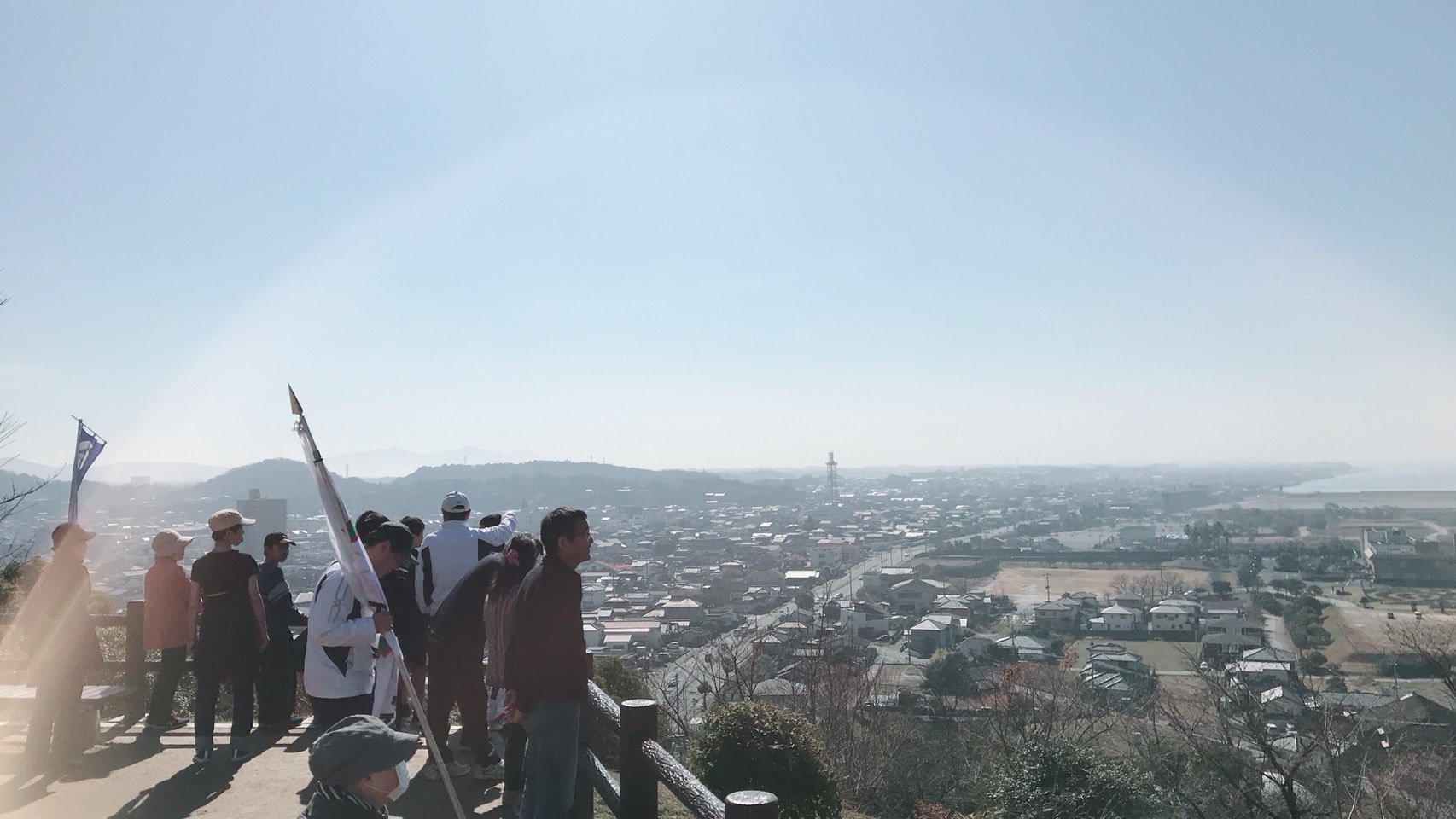 万田山から万田小を見る 投稿日時 : 2018/03/11 承認者 先週は、万田地区協議会主催の歩け歩け大会で、四山神社や荒尾港をめぐりました。今週は、万田中央協議会主催の万田山ハイキングへ。高さは114mだそうですが、約1時間の行程、結構ハードでした。万田小のお友だちも参加。どちらのウォーキングも、心地よいものでした。P1130905 (640x480).jpg