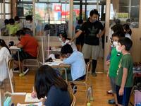 教室と音楽室に分かれたハイブリッド授業が続いている中、「円柱の体積を求める」課題に子供たちは取り組んでいました。