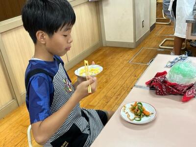 昨日の2組に続いて、今日は1組の子供たちが調理実習を行いました。