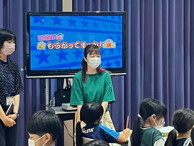 共生の教育の一環として、ひまわり4組の担任で、本校の「えがおサポーター」である末川先生と宇佐先生が3年生の子供たちにわかりやすく説明をしました。