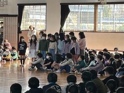 今月23日に卒業する6年生への感謝の気持ちを込めて、各学年が趣向を凝らした出し物で、感謝の気持ちを伝えました。