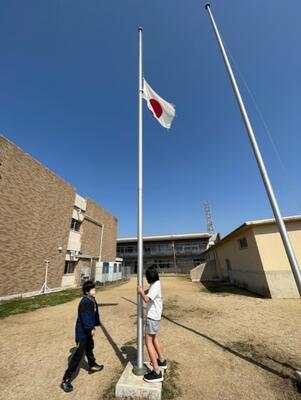 これまで約1年間、ひまわり1組の6年生たちが、雨の日以外毎日運動場にある掲揚台に国旗を上げ下げしてくれていました。