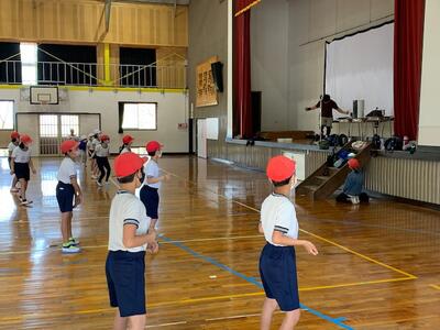 体育館から、音楽とかけ声が聞こえてきたので、そ~っと様子を見に行ってみると…。