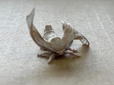 ご覧のとおり、成虫となるカイコ蛾(オス)が羽化しました。