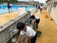 半日かけてきれいにしてくれました~5,6年生プール掃除~