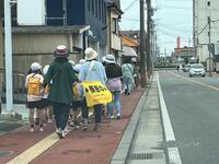 【駅前通り(大正町近辺)を歩く元気な3年生たち】