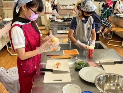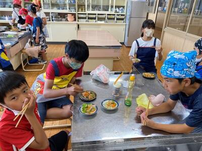 とは言え、各グループ役割分担もしっかり行い、最後は笑顔で野菜炒めを創り上げ、試食していました。
