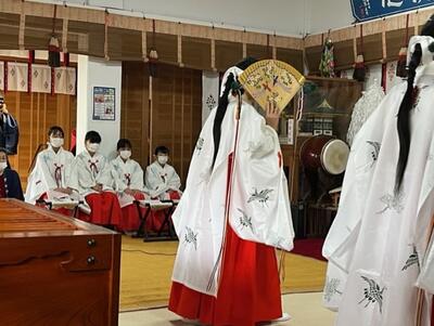 今回も、本校6年生の4名が舞を奉納してくれています。