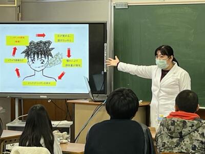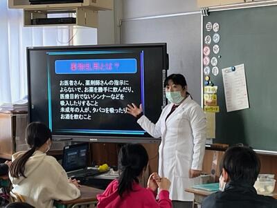 薬物と言うと違法薬物(マリファナや大麻、覚醒剤等)を思い浮かべ「自分には関係ない世界」と思いがちですが、子供たちの身近にある「たばこ」や「お酒」もれっきとした薬物であることをお話ししていただきました。