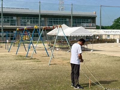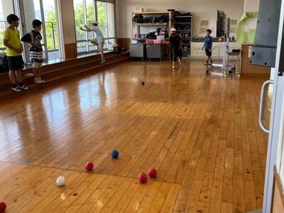 道具の運搬、机イスの移動、遊具の片付け、ライン引き、係の仕事確認などなど…。
