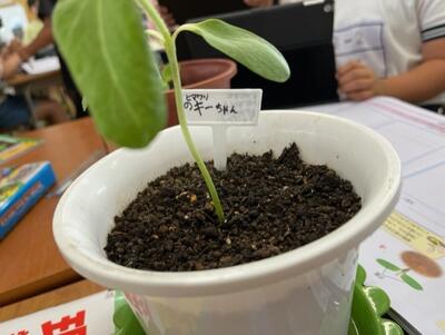 よく見ると、各グループの机に置いてある植木鉢には「キーちゃん」「レインボー」など、それぞれ名前がつけられていました。