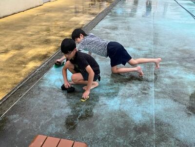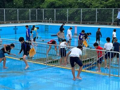 5,6年生ありがとう!~雨の中プール掃除~ ※インスタ投稿あり