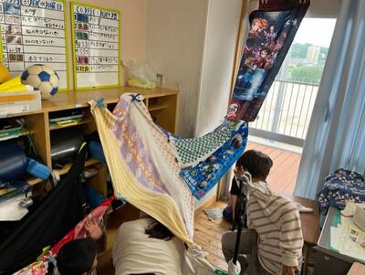 こんなふうに、布をつないで机の隙間を覆うようにしていたのです。