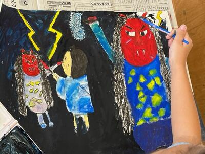 迫力のある絵が仕上がりつつあります~3年生読書感想画~