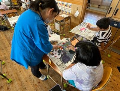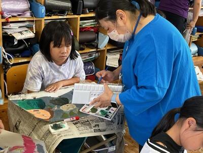 3年生が読書感想画に取り組んでいます。先日もお知らせしたように、GT(ゲストティーチャー)として、池田さんに指導をしていただいています。構図だけでなく、絵の具の使い方や色の塗り方なども丁寧に教えていただいているおかげで、子供たちは迫力いっぱいの絵を仕上げているところです。完成が楽しみです!