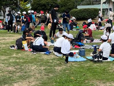 感想交流の後は、両校混じり合って一緒にお弁当タイム(少し時間が短くなってしまってごめんなさい)